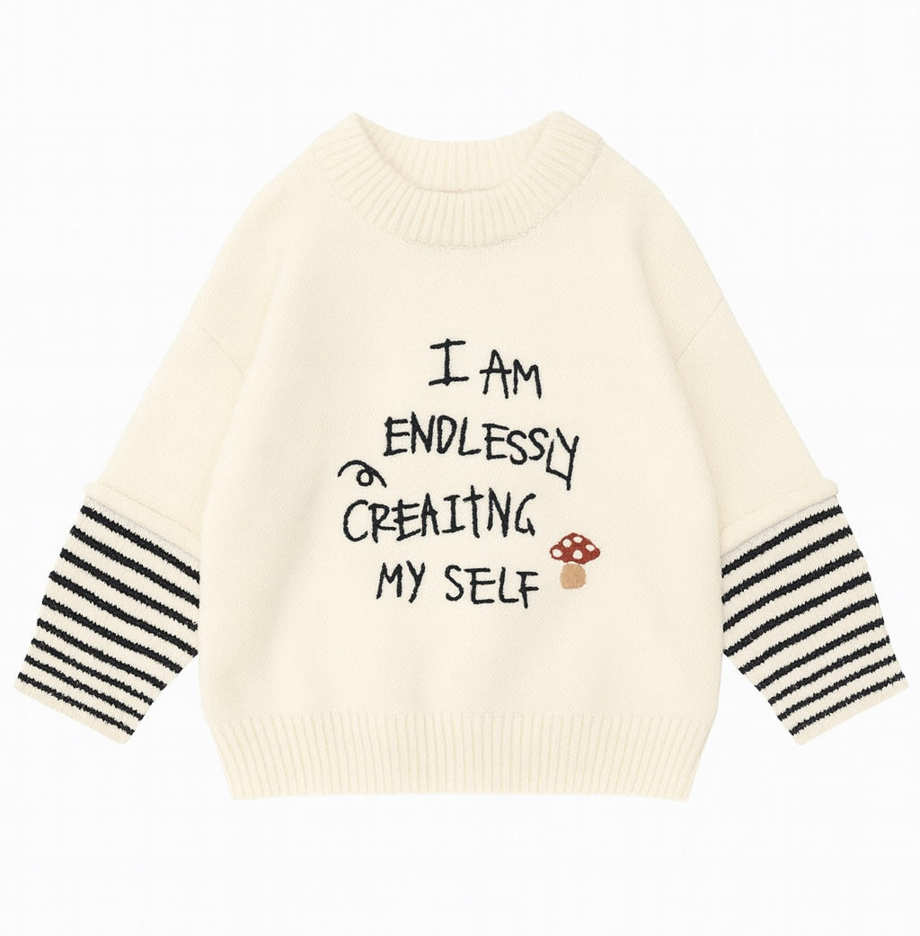 Cream Sweater With Striped Sleeves